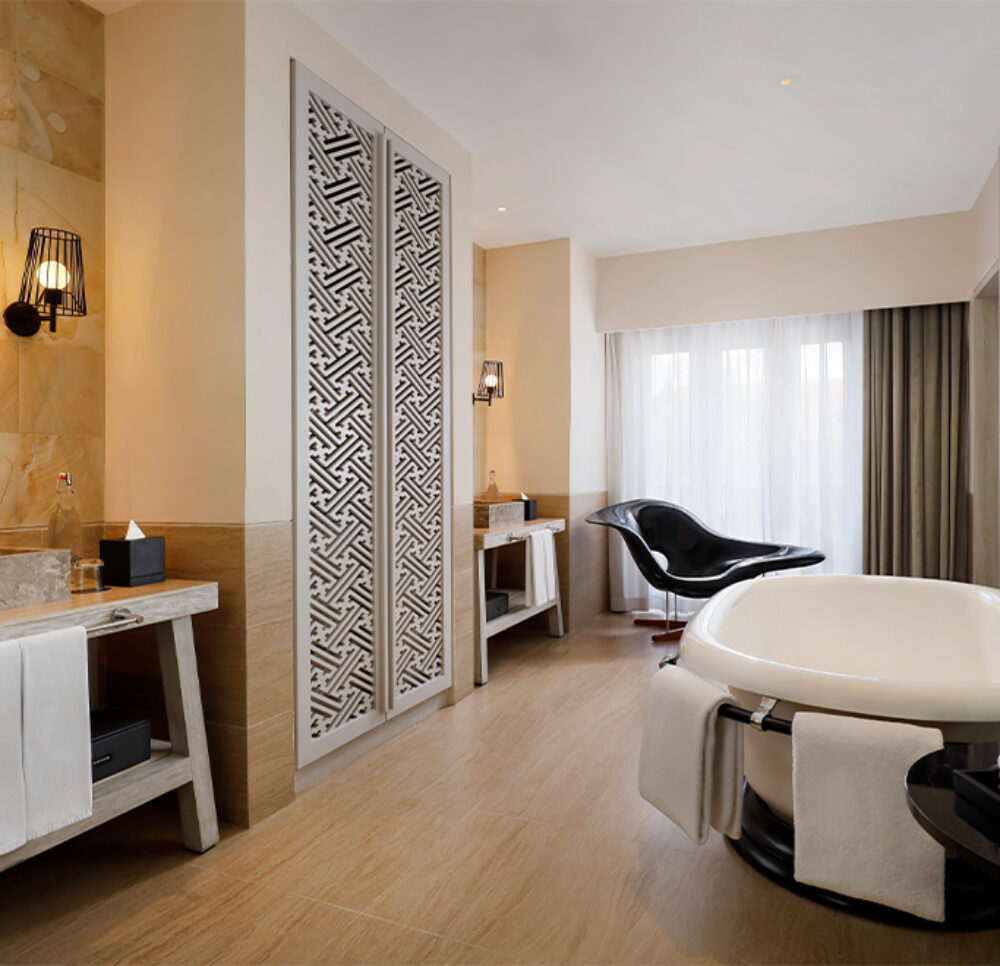 Hard Rock Hotel Bali is een indrukwekkend vijfsterrenresort, gelegen tegenover het levendige Kuta Beach. Het hotel beschikt over meer dan 400 kamers en suites, en biedt een energieke sfeer vol entertainment. Op het resort vindt u het grootste free-form zwembad van Bali, compleet met glijbanen en een zandstrandje. U kunt dineren in een van de restaurants, genieten van een drankje aan de bar en de dag afsluiten met live muziek. Één ding is zeker: hier wacht u een onvergetelijk strandverblijf vol plezier!
