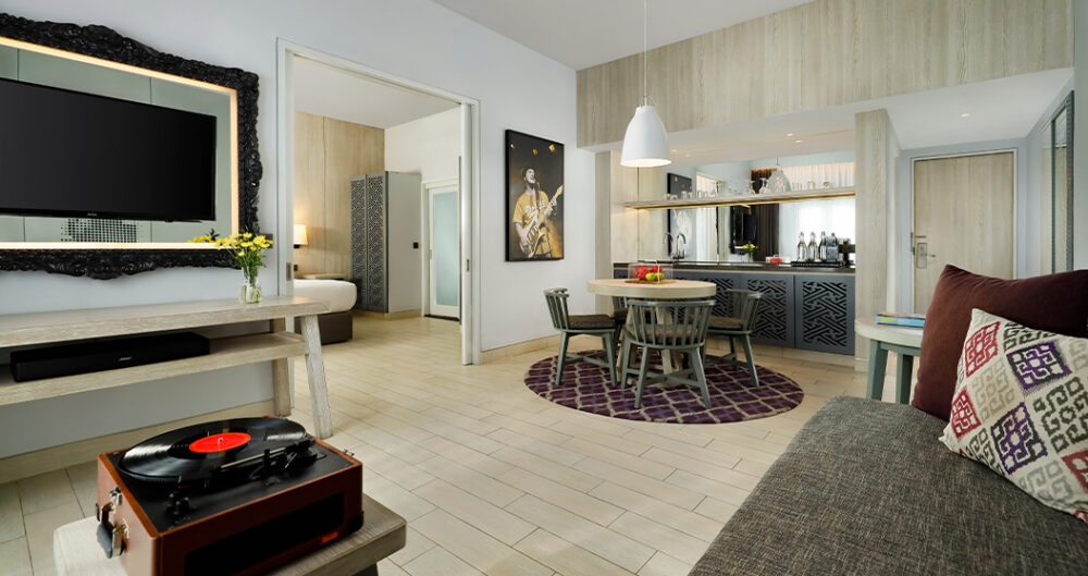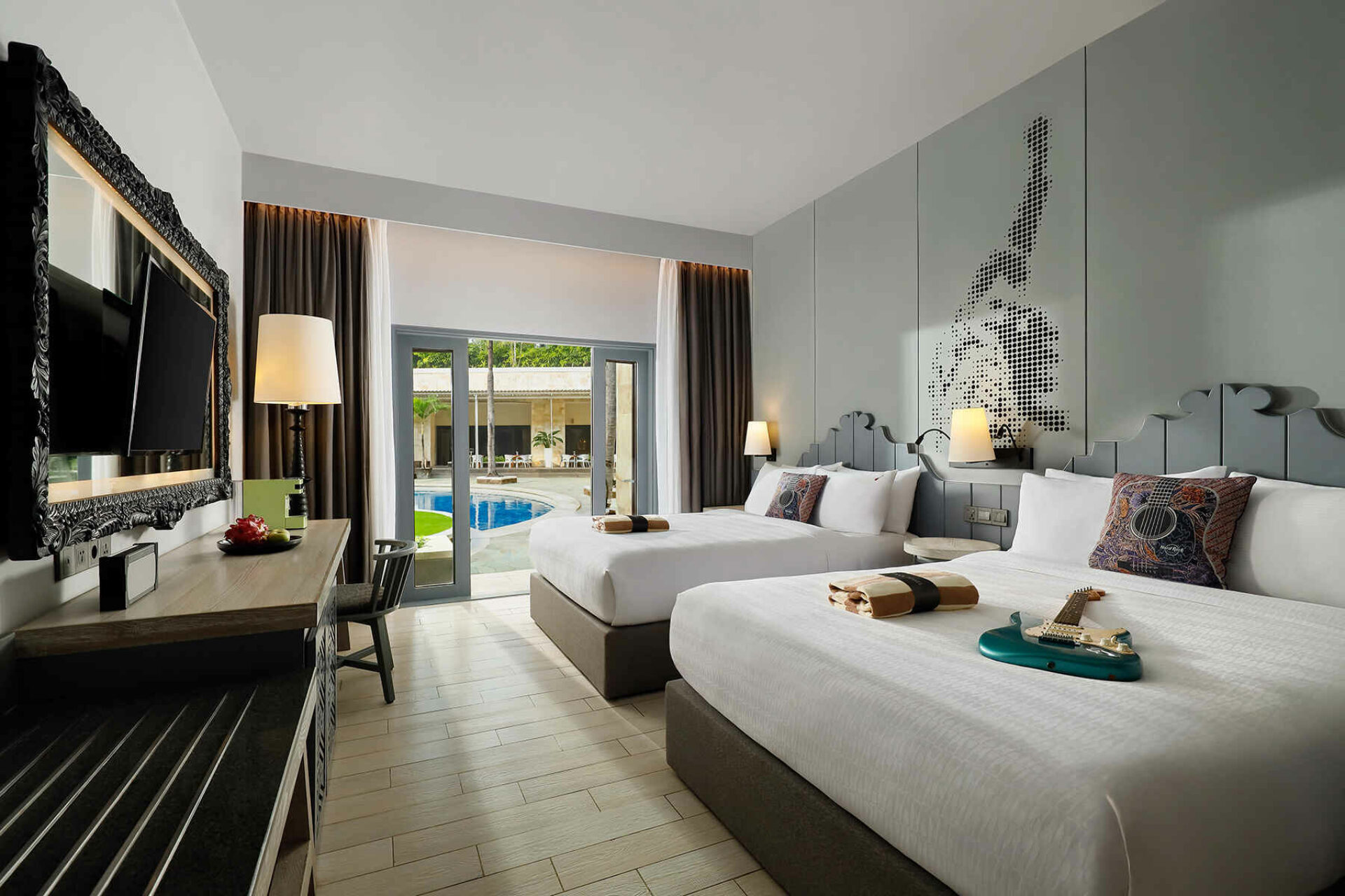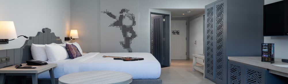 Het resort telt meer dan 400 kamers, elk met een subtiele muzikale knipoog en uitzicht op de tuin of het zwembad. De kamers zijn ruim opgezet en van alle gemakken voorzien. Zo beschikt elke kamer over een zithoek, gratis wifi, airconditioning, een kluisje, koffie- en theefaciliteiten, een flatscreen-tv en een minibar of koelkastje.